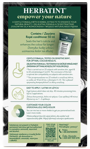 Herbatint to naturalna, ziołowa, trwała farba do włosów. Ponad 50 lat doświadczenia producenta, firmy Antica Erboristeria Italy, pozwoliło na opracowanie unikalnej receptury, dzięki której uzyskano harmonijne połączenie minimalnej ilości substancji chemicznych z wyciągami roślinnymi i ziołowymi. Efektem jest farba do włosów, która nie tylko łagodnie i trwale barwi twoje włosy, ale również odżywia je, chroni i pielęgnuje.