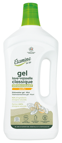 Skoncentrowany żel do zmywarki z organiczną miętą. Dobrze usuwa tłuszcz i nabłyszcza naczynia. Delikatnie pachnie miętą i pozostawia przyjemny zapach w zmywarce. Polecany szczególnie przy twardej wodzie. Na 50 cykli zmywania. 1 l