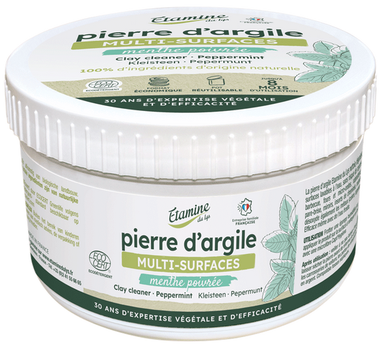 Kamień z zielonej glinki Etamine du Lys to uniwersalne, naturalne i skuteczne rozwiązanie do czyszczenia i konserwacji wszystkich powierzchni zmywalnych wodą, bez ryzyka ich zarysowania. Pachnący organicznym olejkiem eterycznym z mięty pieprzowej, łączy świeżość i uniwersalną przydatność, skutecznie usuwając codzienne zabrudzenia.